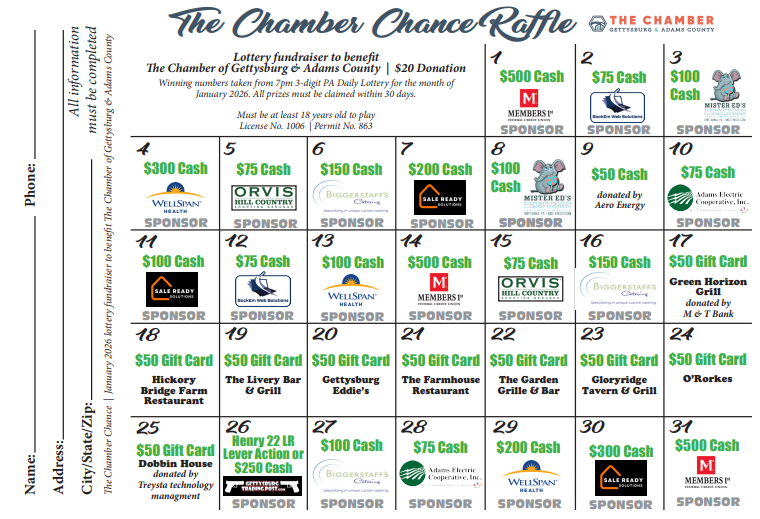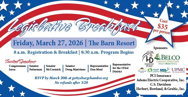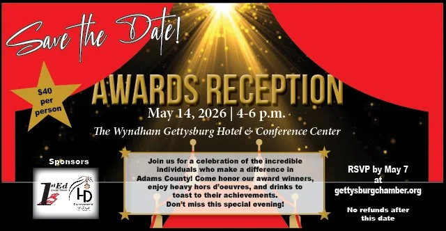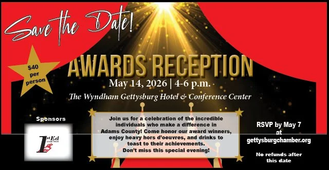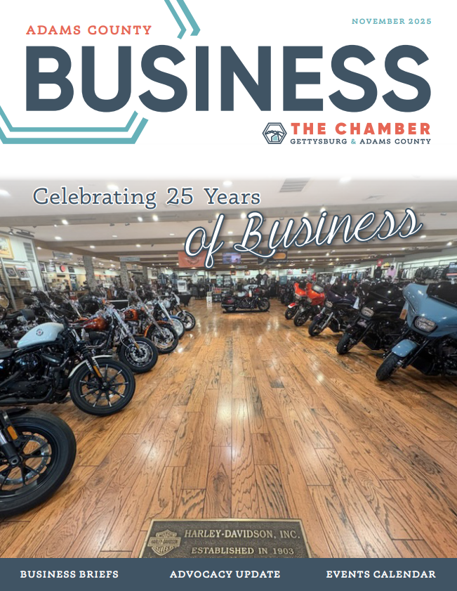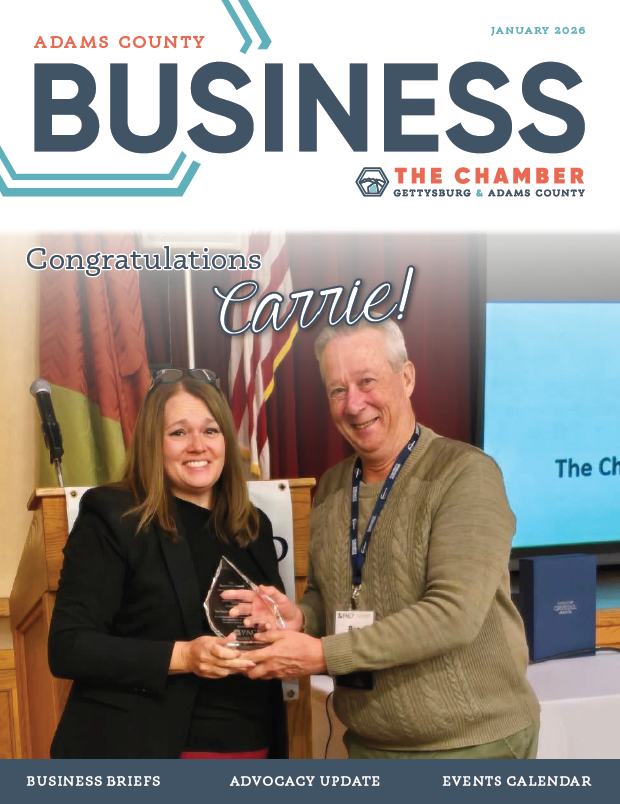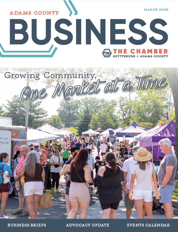 The Chamber of Gettysburg & Adams County supports and strengthens our members and the Adams County area by promoting diverse economic opportunities through advocacy, building relationships, providing timely information and developing leaders for the future.
